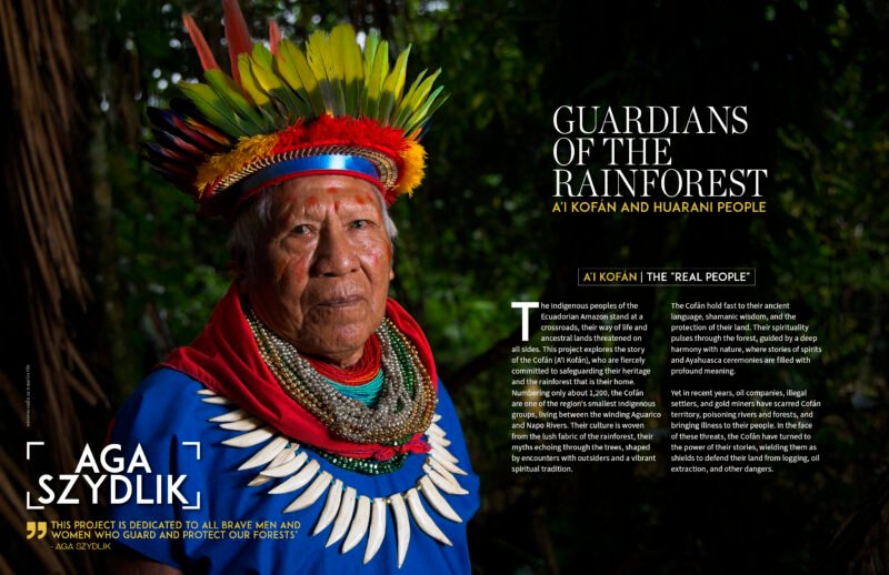 The Indigenous peoples of the Ecuadorian Amazon stand at a crossroads, their way of life and ancestral lands threatened on all sides. This project explores the story of the Cofán (A’i Kofán), who are fiercely committed to safeguarding their heritage and the rainforest that is their home. Numbering only about 1,200, the Cofán are one of the region’s smallest Indigenous groups, living between the winding Aguarico and Napo Rivers. Their culture is woven from the lush fabric of the rainforest, their myths echoing through the trees, shaped by encounters with outsiders and a vibrant spiritual tradition. The Cofán hold fast to their ancient language, shamanic wisdom, and the protection of their land. Their spirituality pulses through the forest, guided by a deep harmony with nature, where stories of spirits and Ayahuasca ceremonies are filled with profound meaning.