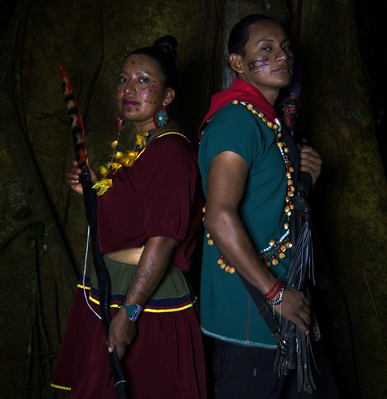 This unwavering commitment to defense comes to life in the Indigenous Guardia, named for the legendary hero Erisiun—a group of courageous and dedicated men and women devoted to protecting their ancestral home. Dressed in black and green, the A’i Cofán guards carry short chonta palm spears decorated with amulets, moving like shadows through the jungle’s secret paths. These guardians patrol a vast territory stretching from the Andean foothills to the heart of the Amazon, their watchful eyes ever alert for illegal gold mining and the smuggling of illicit gold.